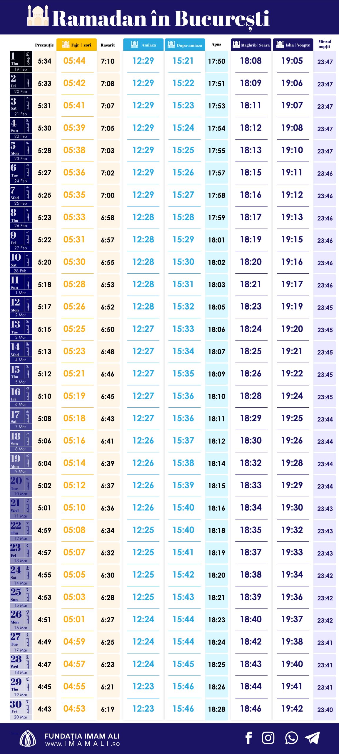 Acest orar este provizoriu și va fi revizuit dacă se va modifica din cauza observării semilunii.